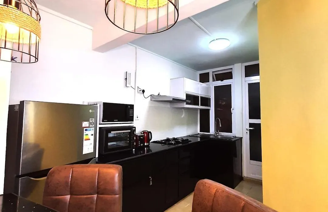 La cocina completa, completamente equipada para preparar comidas, incluye una nevera. Si tienes un vuelo temprano desde Pereybere Beach, el apartamento de 60 m² se encuentra a 75 km del aeropuerto Sir Seewoosagur Ramgoolam.